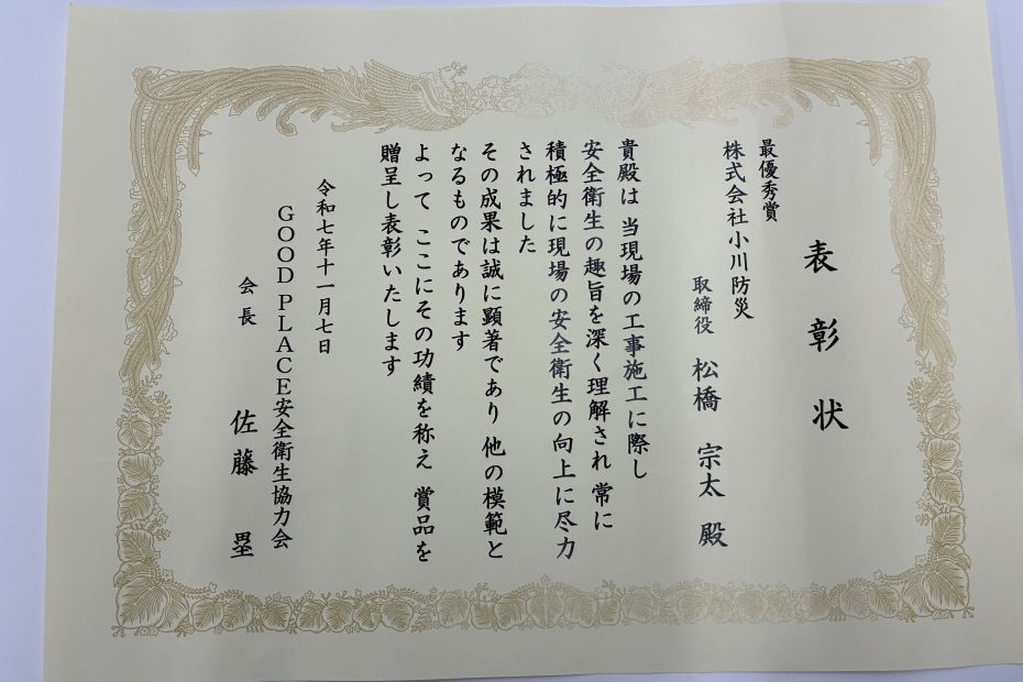 11月7日に開催されたGOOD PLACE安全衛生協力会 安全大会にて最優秀賞をいただきました。 こ… 続きを読む »株式会社GOODPLACE様主催の安全大会で最優秀賞をいただきました🎊